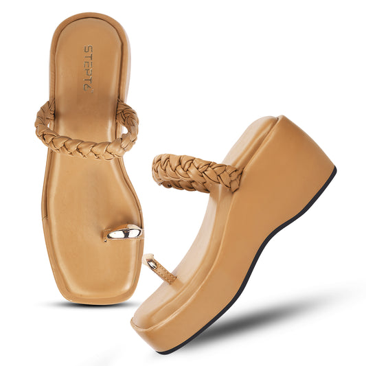 BEIGE WOVEN STRAP WEDGES