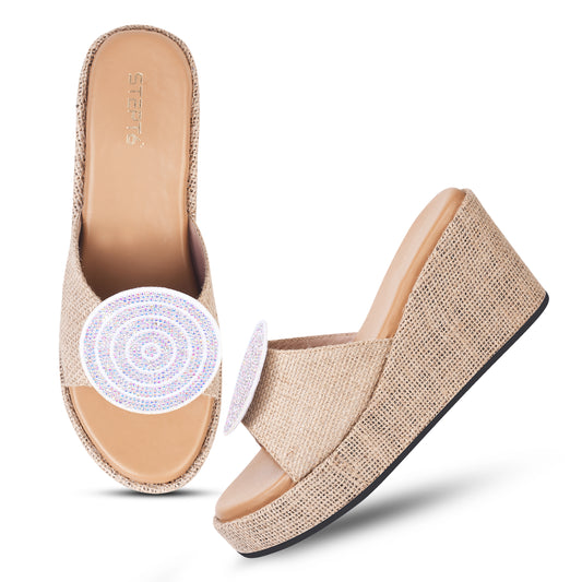BEIGE JUTE WEDGE WITH STUDDED PATCH
