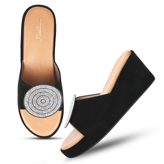BLACK STRAP COMFY WEDGES