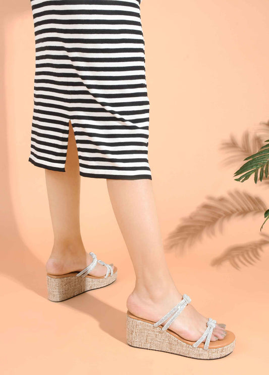 Beige jute diamond chain wedge