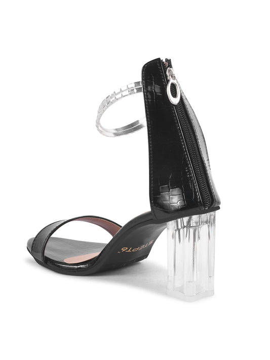 BLACK PATTERN TRANSPARENT BLOCK HEEL
