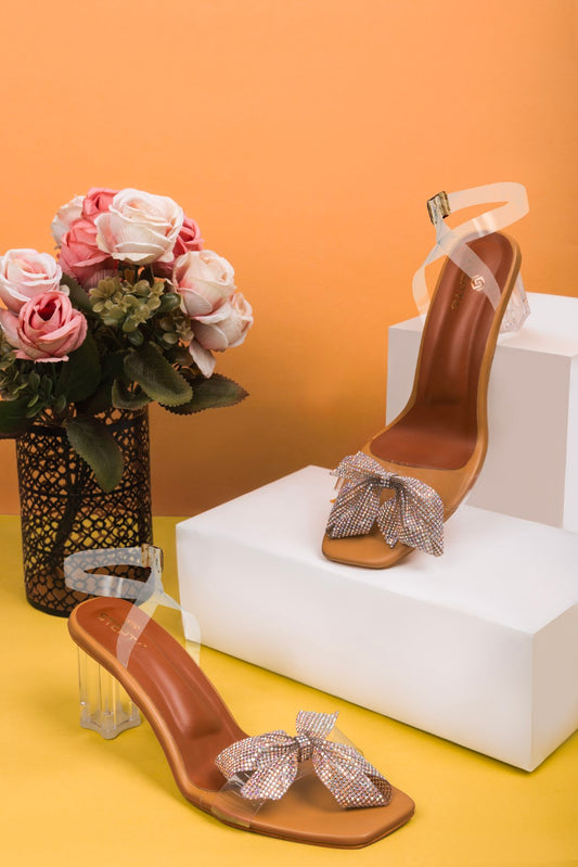 Sold outBow Transparent Block Heel - Beige