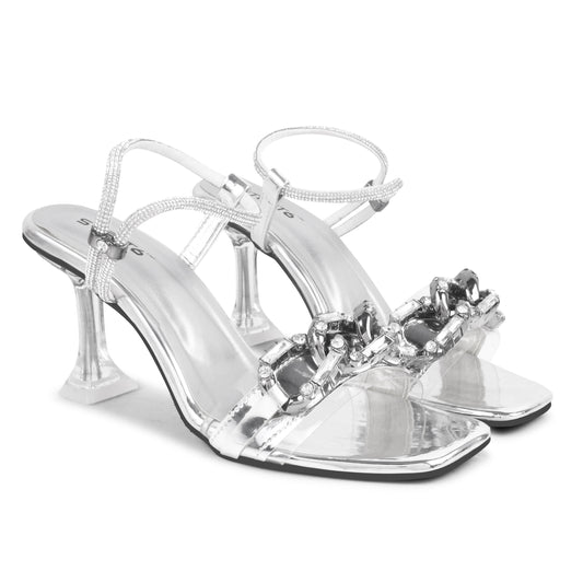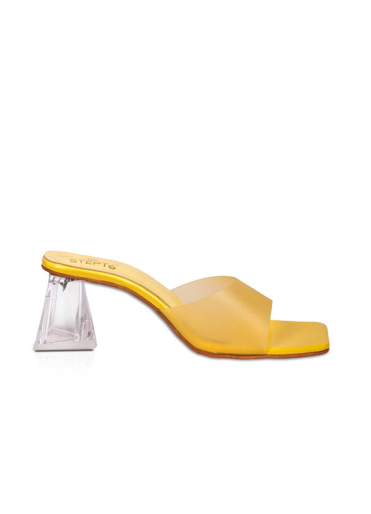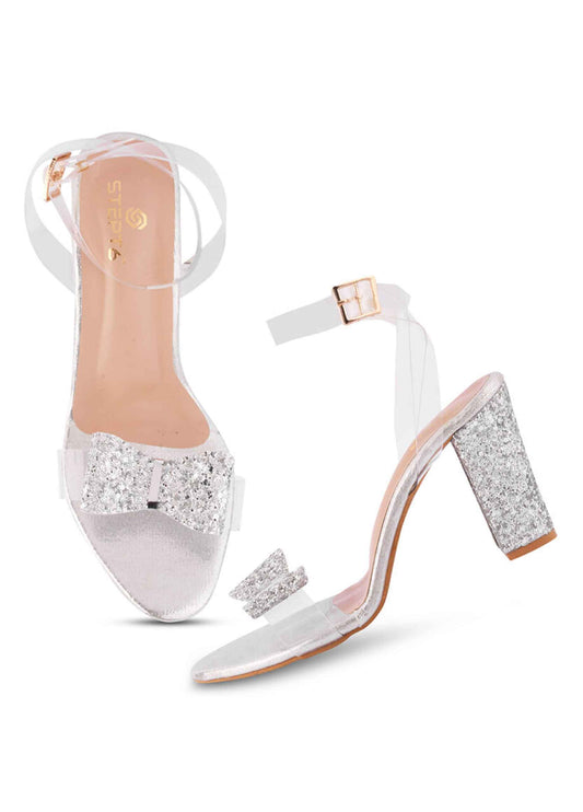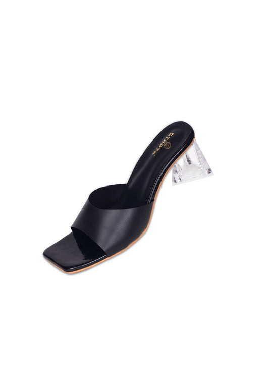 RED STRAP GREEN TOE TRANSPARENT BLOCK HEEL