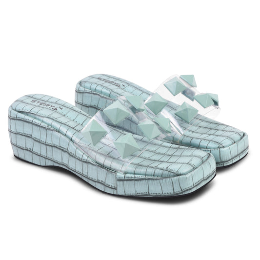 SPARKLE SUEDE COMFORT SLIDES FOR WOMEN - BLUE