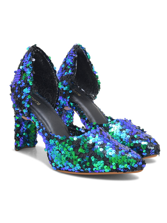 RED STRAP GREEN TOE TRANSPARENT BLOCK HEEL