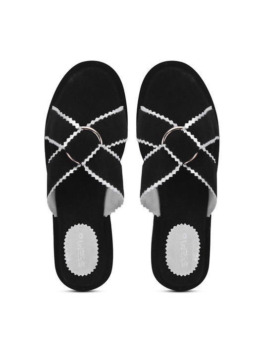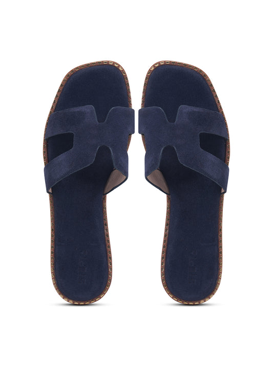 Urban Chic Navy Blue H-Strap Slip-On Sandals for Women