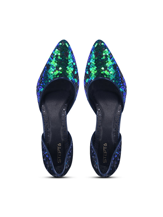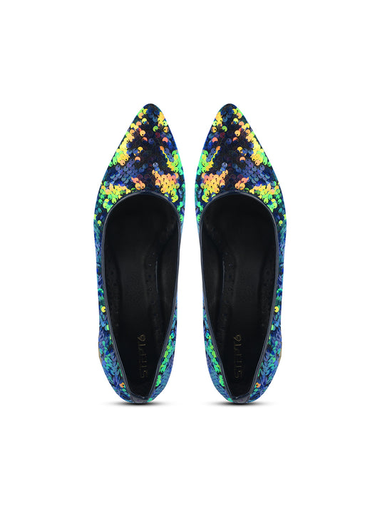 Shimmer Crush Blue-Green Sequin Block Heel Pumps