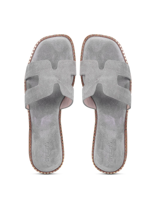 Urban Chic Light Grey H-Strap Slip-On Sandals for Women