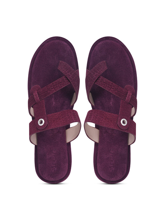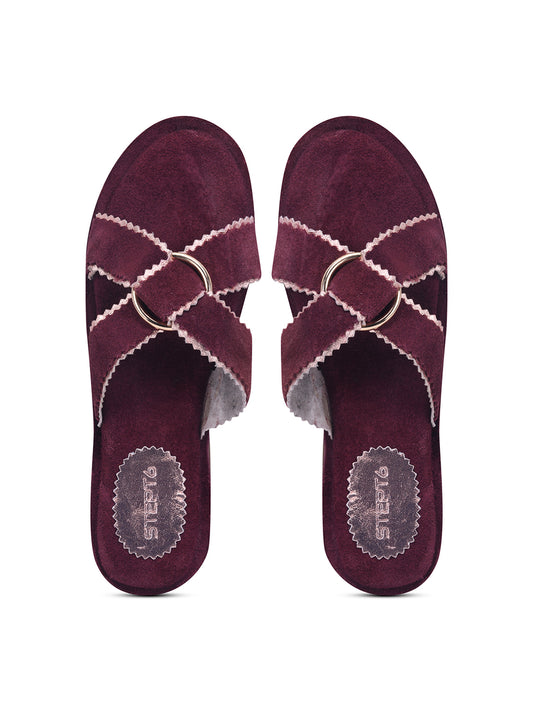 Plum Maroon Cross-Strap Slip-On Comfort Sandals for Women