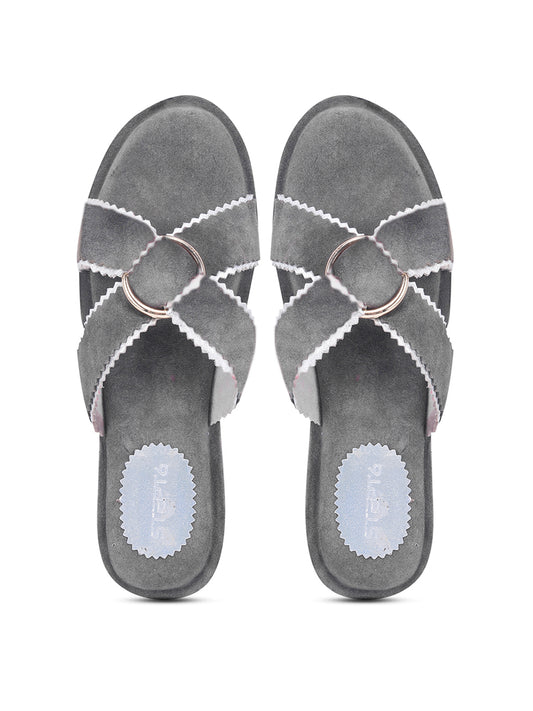 Urban Chic Grey Slip-On Comfort Sandals for Women