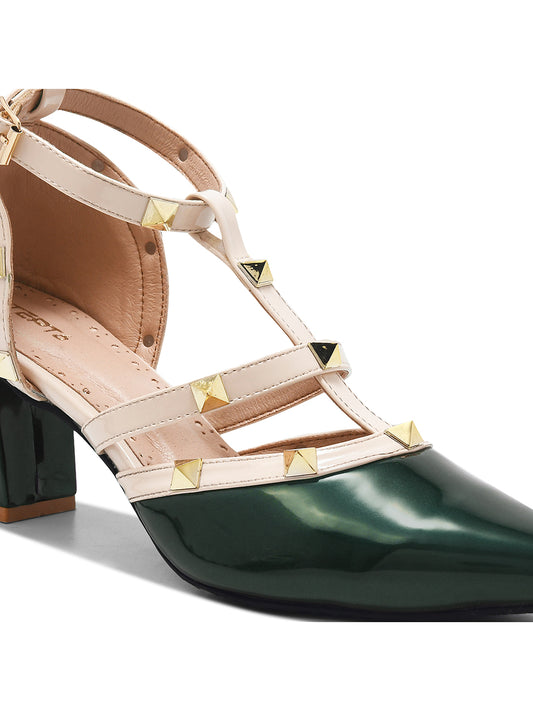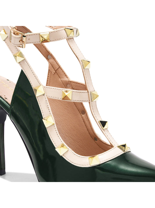 Dark Green Studded Ankle Strap Stiletto Heels for Women