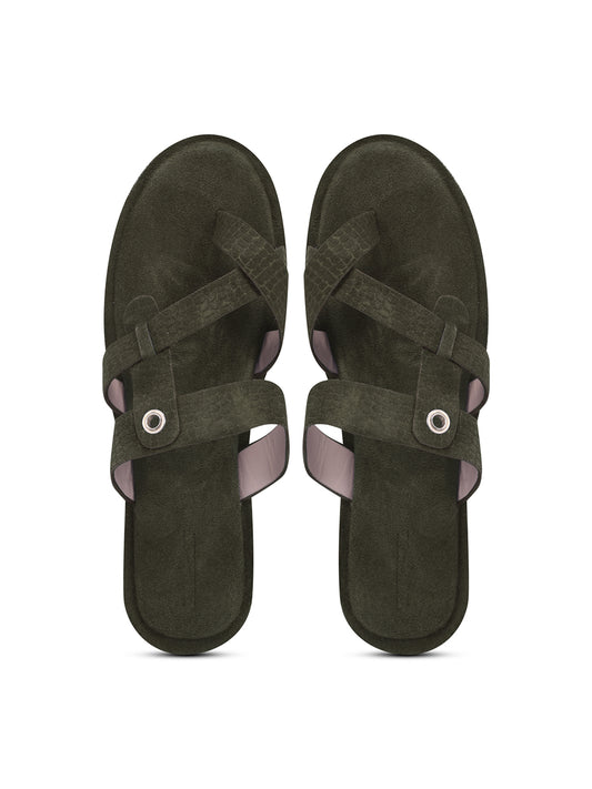 Olive Green Cross-Strap Slip-On Sandals for Women