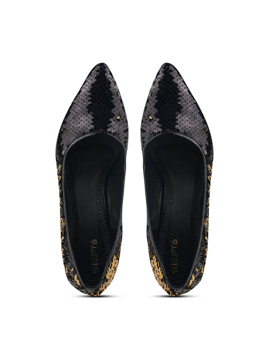 Midnight Luxe Black & Gold Sequin Party Pumps