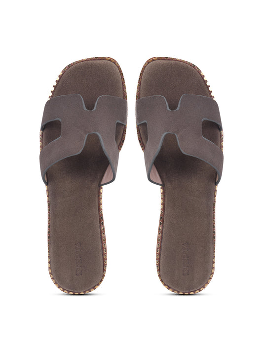 Urban Chic Dark Grey H-Strap Slip-On Sandals for Women