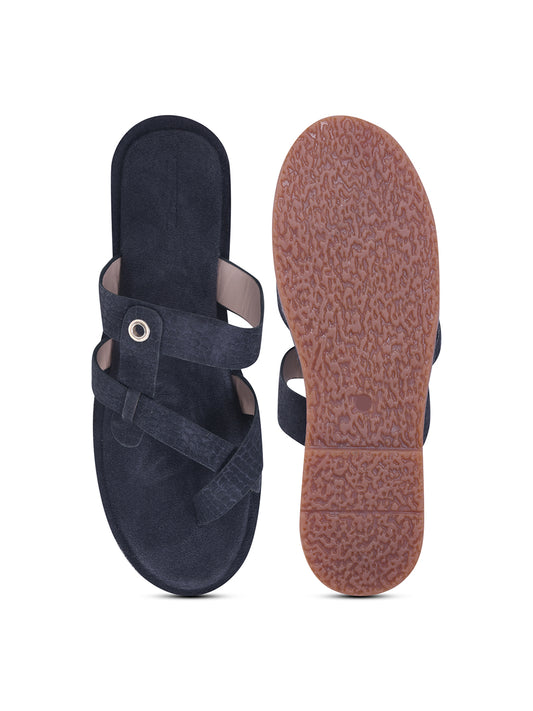 Navy Blue Cross-Strap Slip-On Comfort Sandals for Women