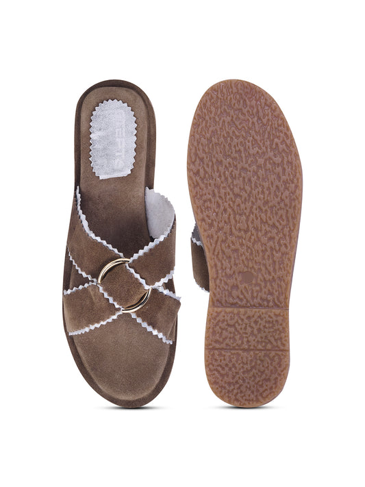 Urban Chic Brown Slip-On Comfort Sandals for Women