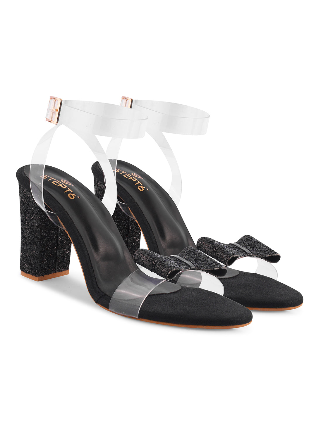 Neolite Rubber Sole, ABS transparent fancy heel, faux leather with diamond glitter strap