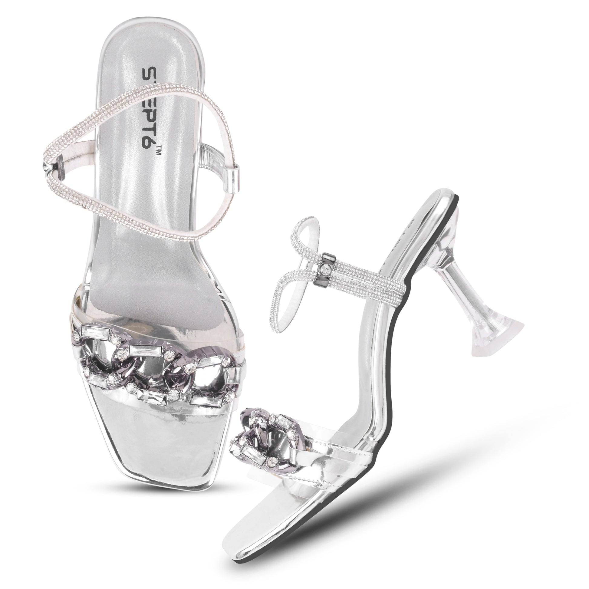 Neolite Rubber Sole, ABS transparent fancy heel, faux leather with diamond glitter strap